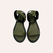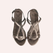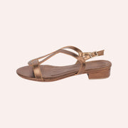 Sandália em couro mestiço metalizado, sola de borracha