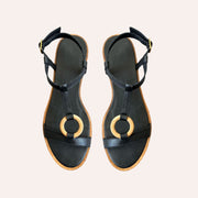 Sandália em couro salto e argola de madeira sola toda em couro salto 2 cm.