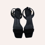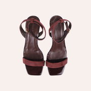 Sandália produzida em couro com solado em couro com salto de 4 cm.