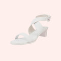 Sandália em couro com salto madeira e fivela forrada em couro.