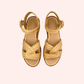 Sandália produzida em tiras de ráfia, trabalho artesanal, salto 5 cm.