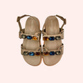 Sandália produzida em couro nobre bem macio com pedras coloridas.