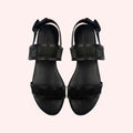 Sandália em tela e couro com salto forrado em couro, com altura de 2,5cm