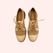 Sapato em couro tipo mestiço em duas cores, salto 1,9cm