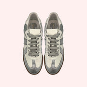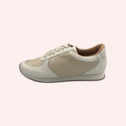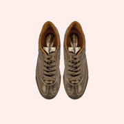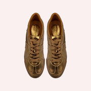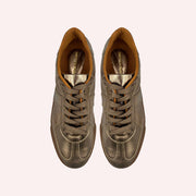 Tênis em couro metalizado.