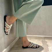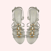 Sandália produzida em couro nobre bem macio, metal grafite. Solado e forração em couro. Salto em madeira com altura de 6,5 cm.