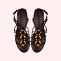 Sandália produzida em couro com argolas de madeira e salto 3cm.