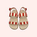 Sandália listrada em couro, solado anatômico.
