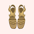 Sandália produzida em tiras de ráfia e couro, trabalho artesanal